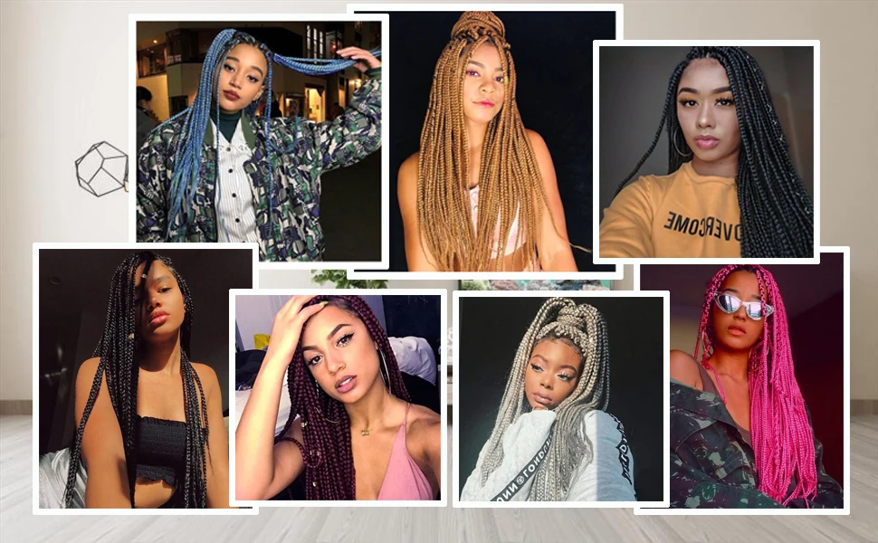 Box Braids, Dutch braids, French braids,Jumbo knot less braids,Ponytail, Twists,Locs ,etc. |