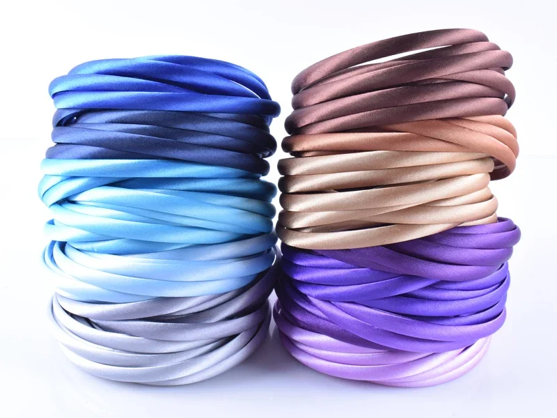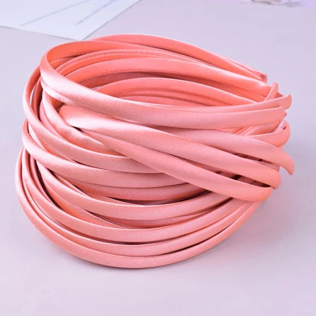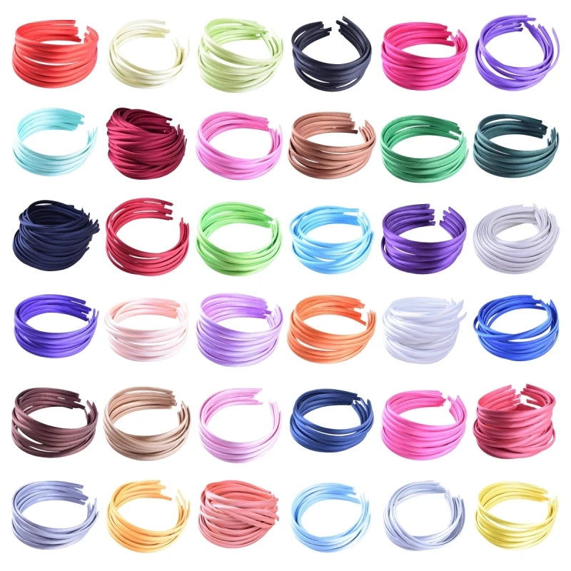 10pcs/lot Plain 10MM Satin Headband Girls Fabric Covered Resin Hairbands Plastic Headbands Kids Elastic Bands Hair Accessories