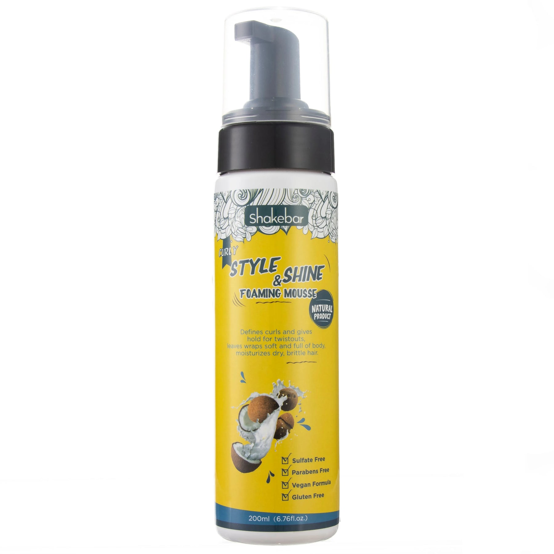 Shakebar Style & Shine Foaming Mousse, Hair Mousse, Defines Curls, Leaves Hair Soft and Voluminous, Moisturizes Dry Brittle Hair