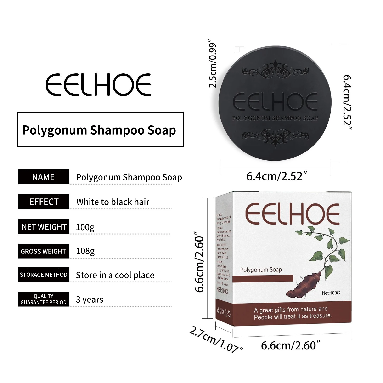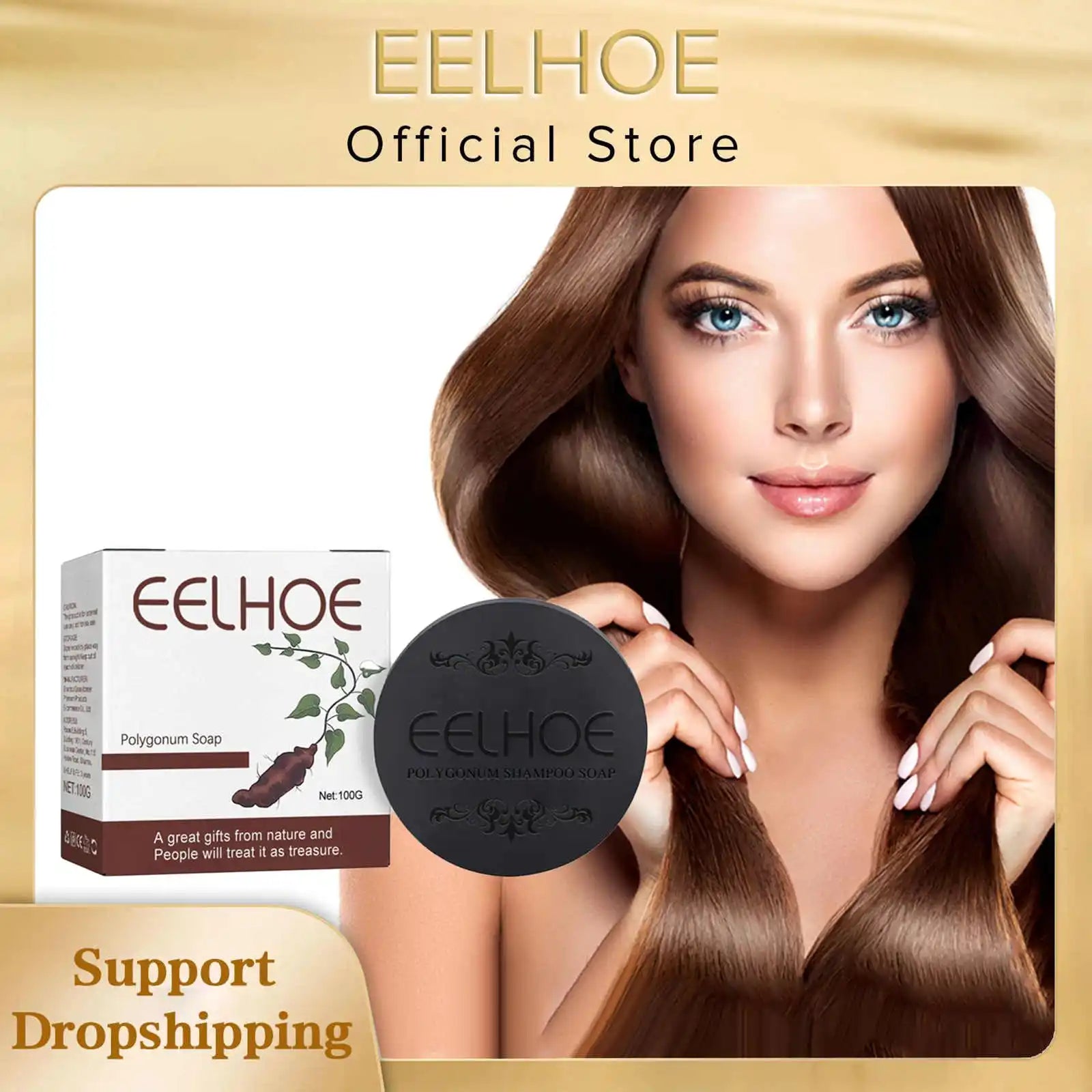 EELHOE Herbal Hair Growth Anti Hair Loss Moisturizing Volumizing Shampoo Soap Deep Cleaning Organic Polygonum Hair Darkening Soap Bar 100g/Boxed