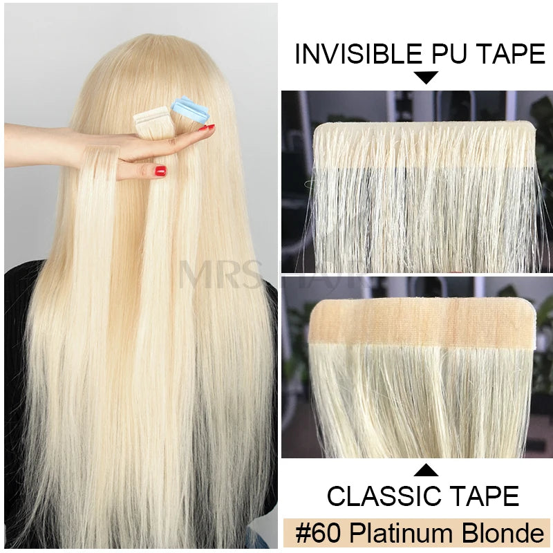Invisible Tape in Hair Injection Tape in Human Hair Extensions #60 PU Weft Tape On 10pcs/pack Only Add Volume For Side Hair