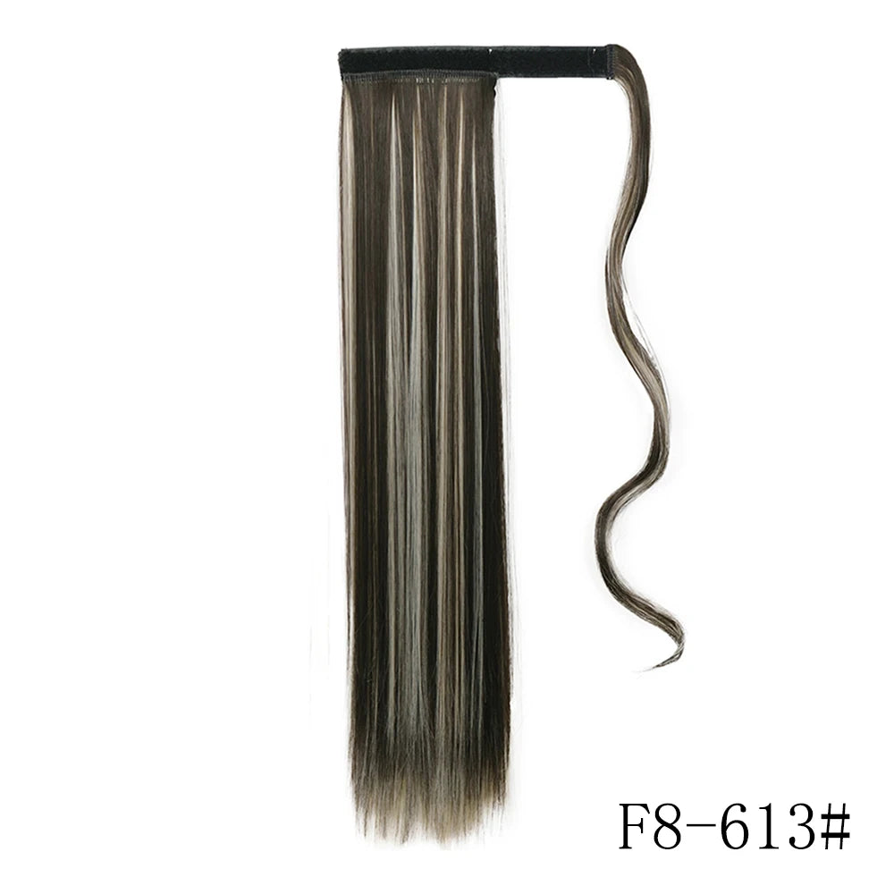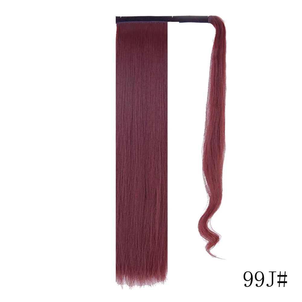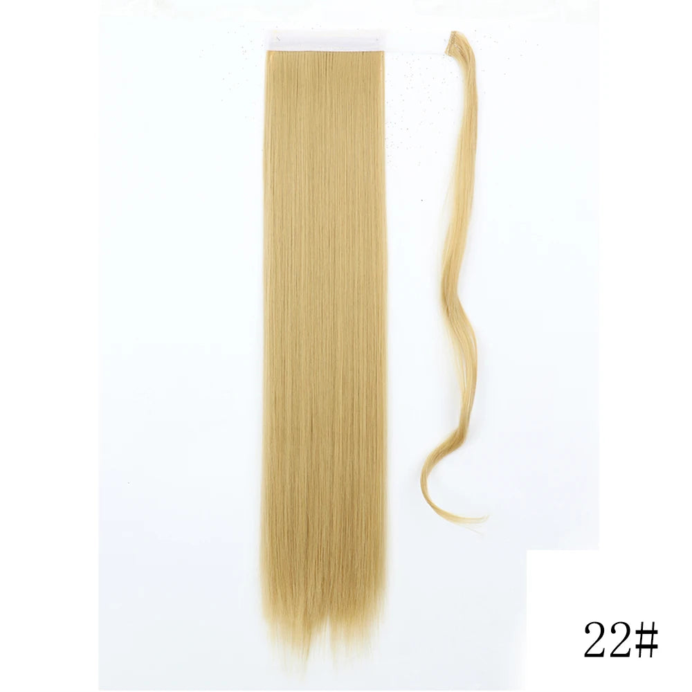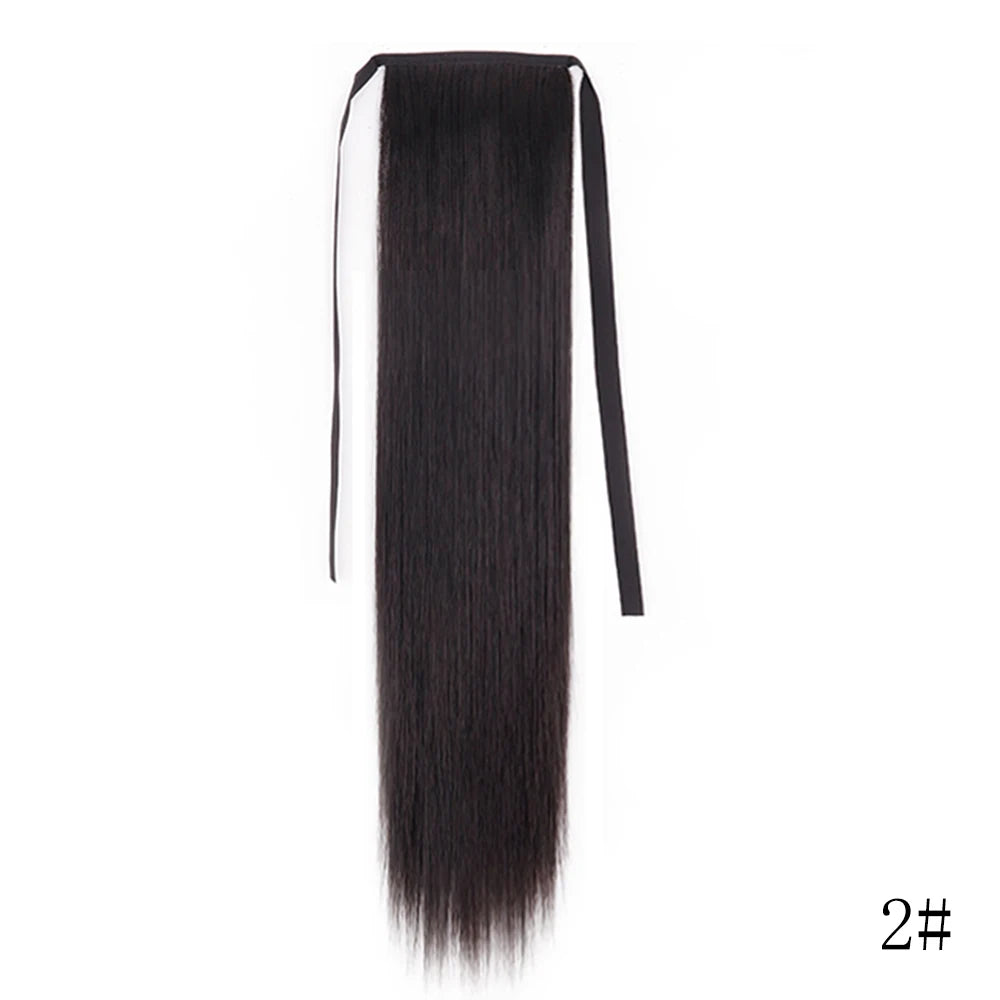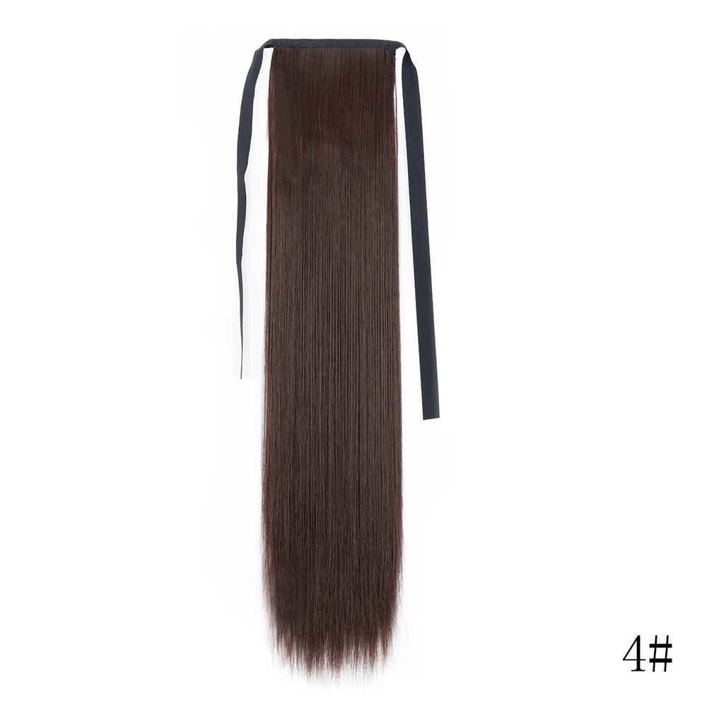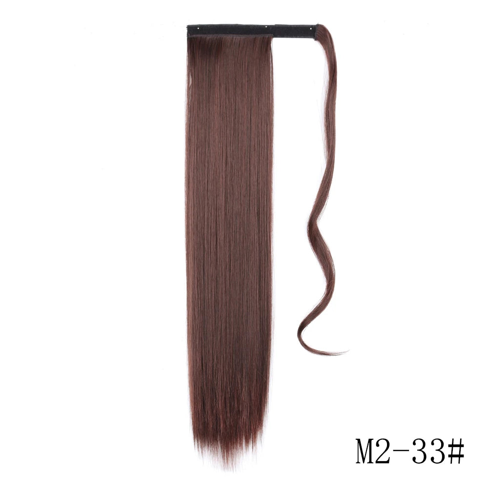 LISI GIRL Synthetic Hair 22''34'' Long Straight Ponytail Wrap Around Ponytail Clip in Hair Extensions Black Hairpiece Headwear