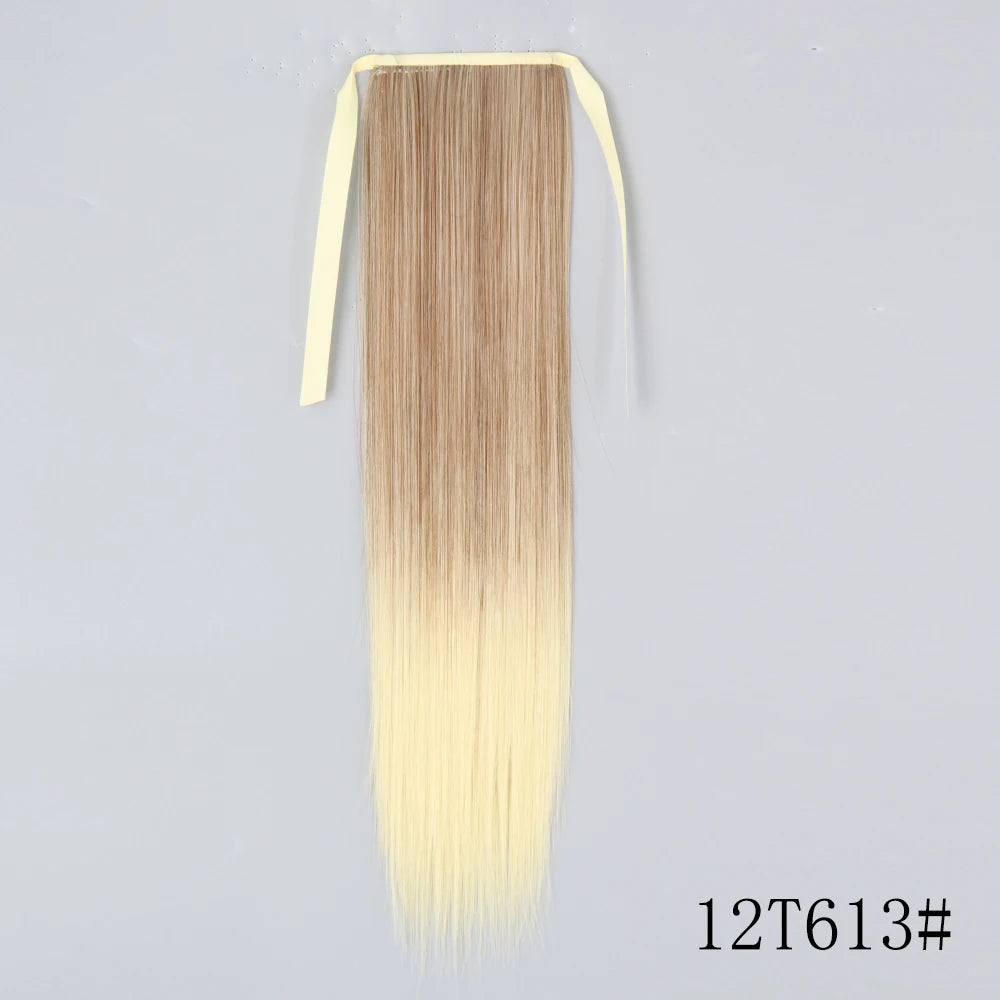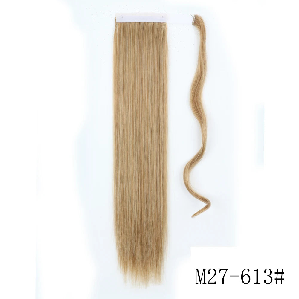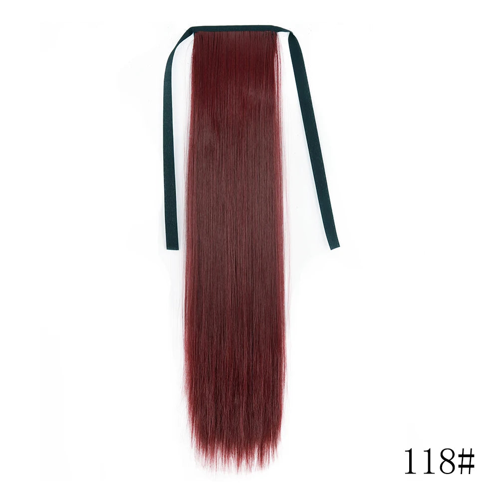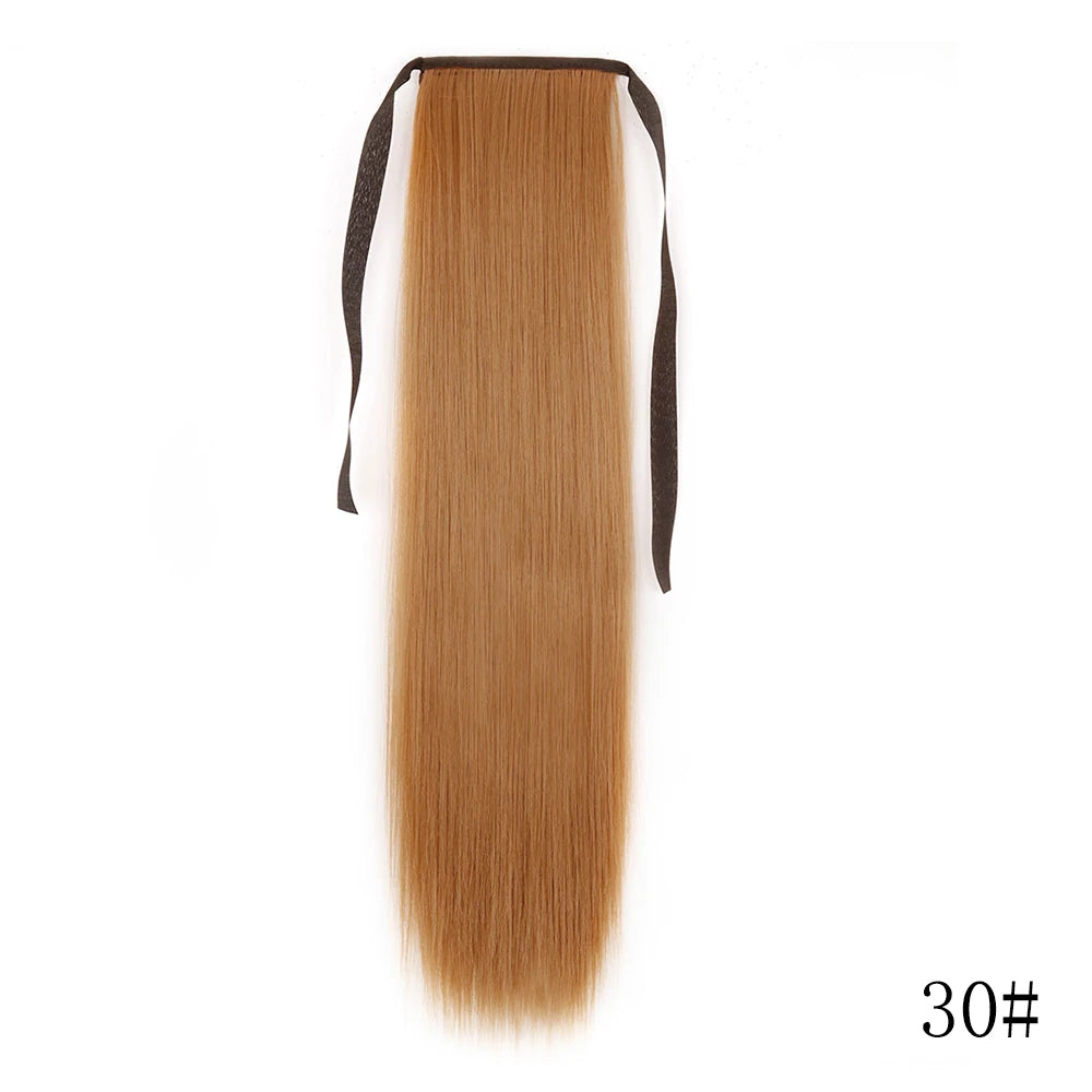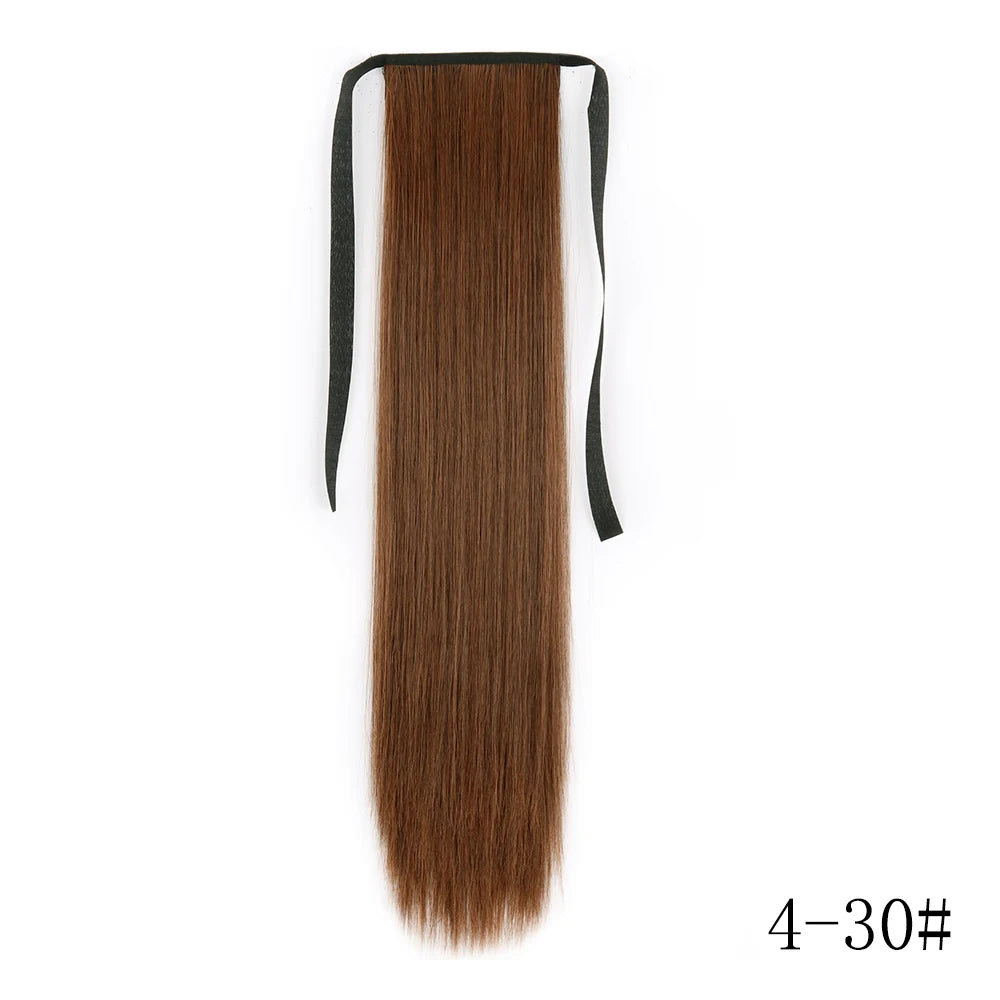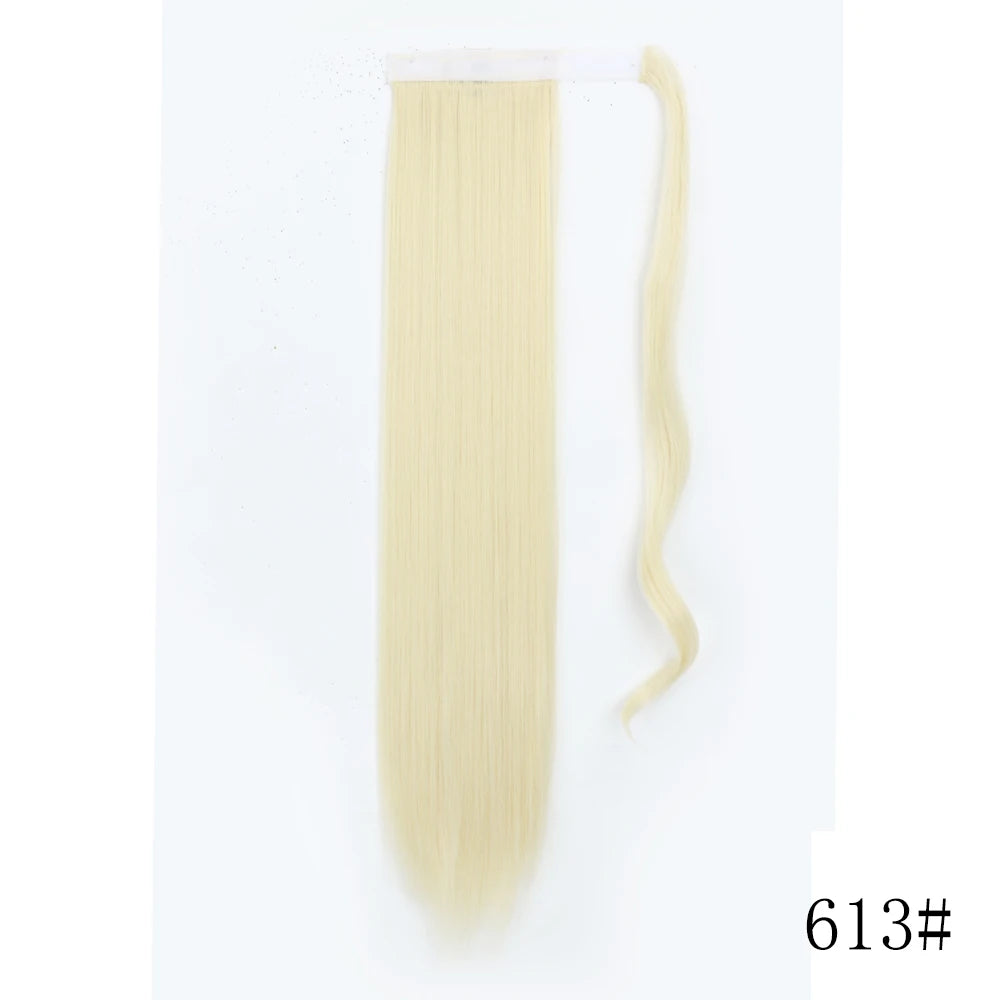 LISI GIRL Synthetic Hair 22''34'' Long Straight Ponytail Wrap Around Ponytail Clip in Hair Extensions Black Hairpiece Headwear