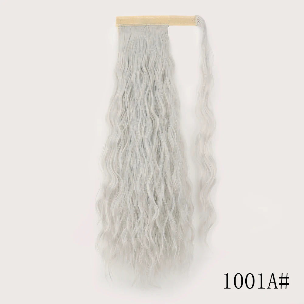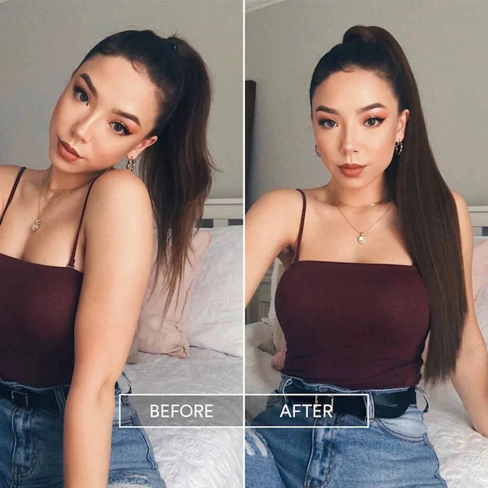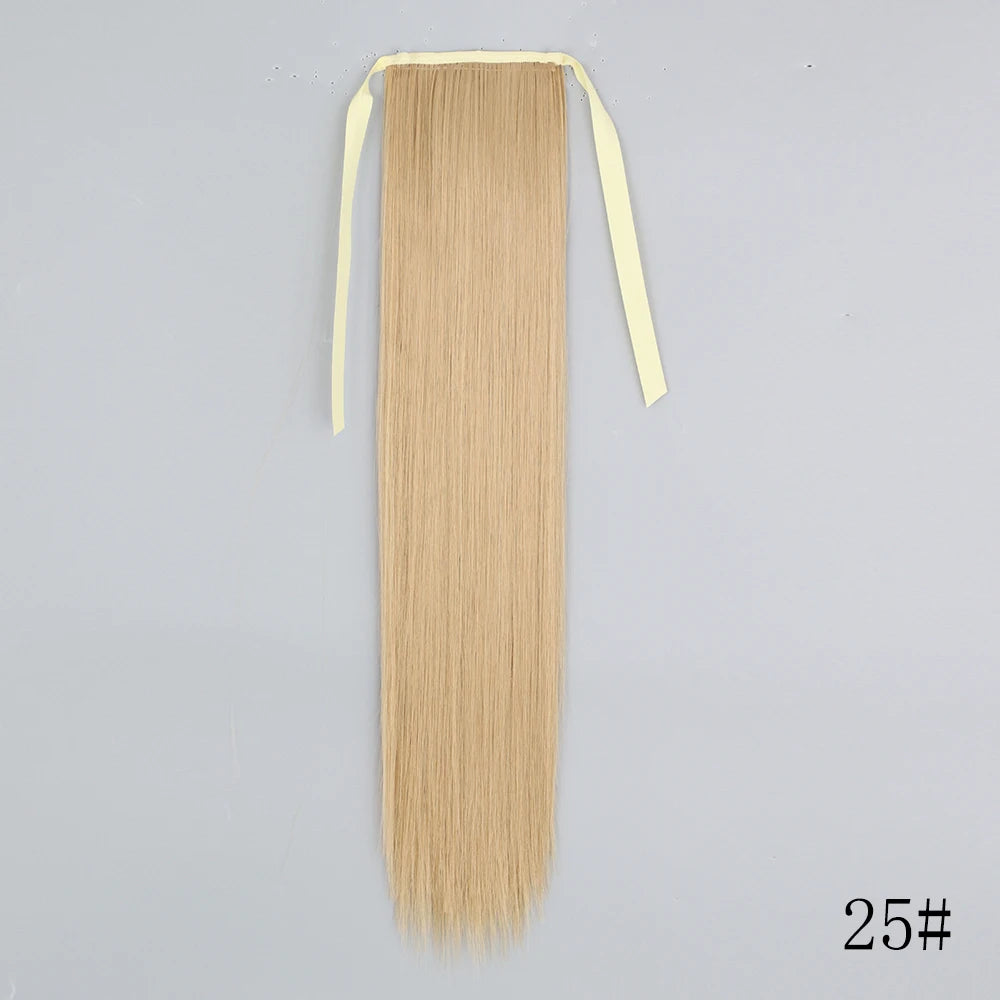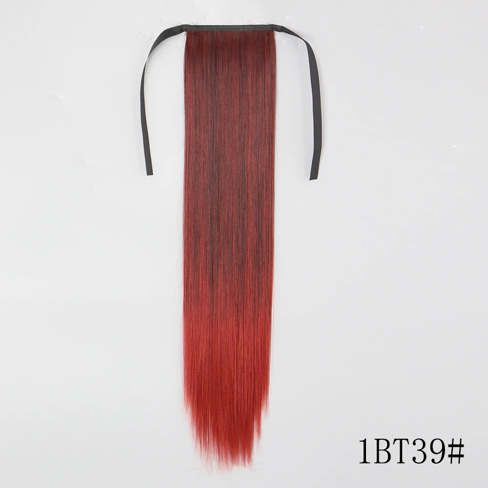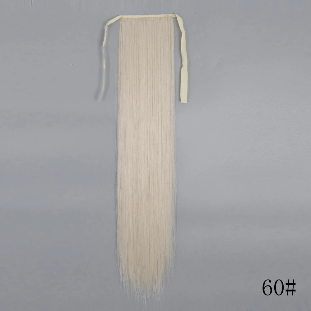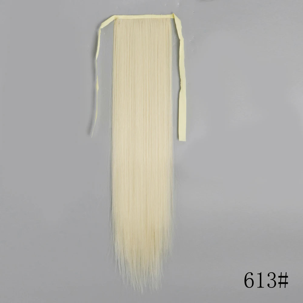 LISI GIRL Synthetic Hair 22''34'' Long Straight Ponytail Wrap Around Ponytail Clip in Hair Extensions Black Hairpiece Headwear