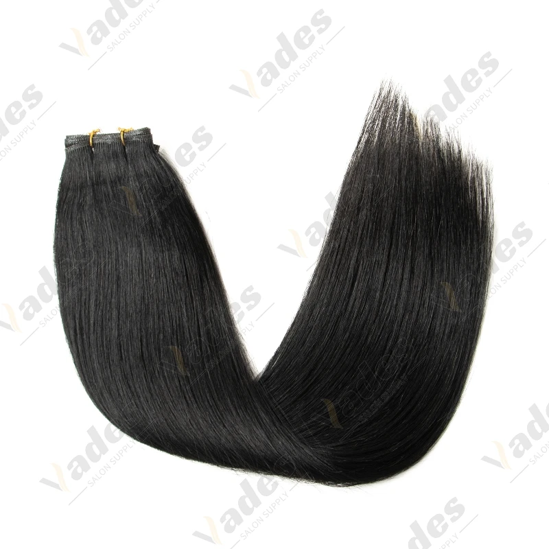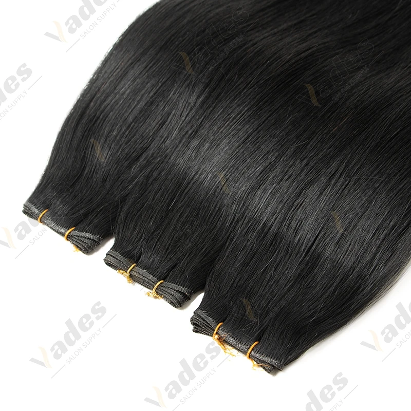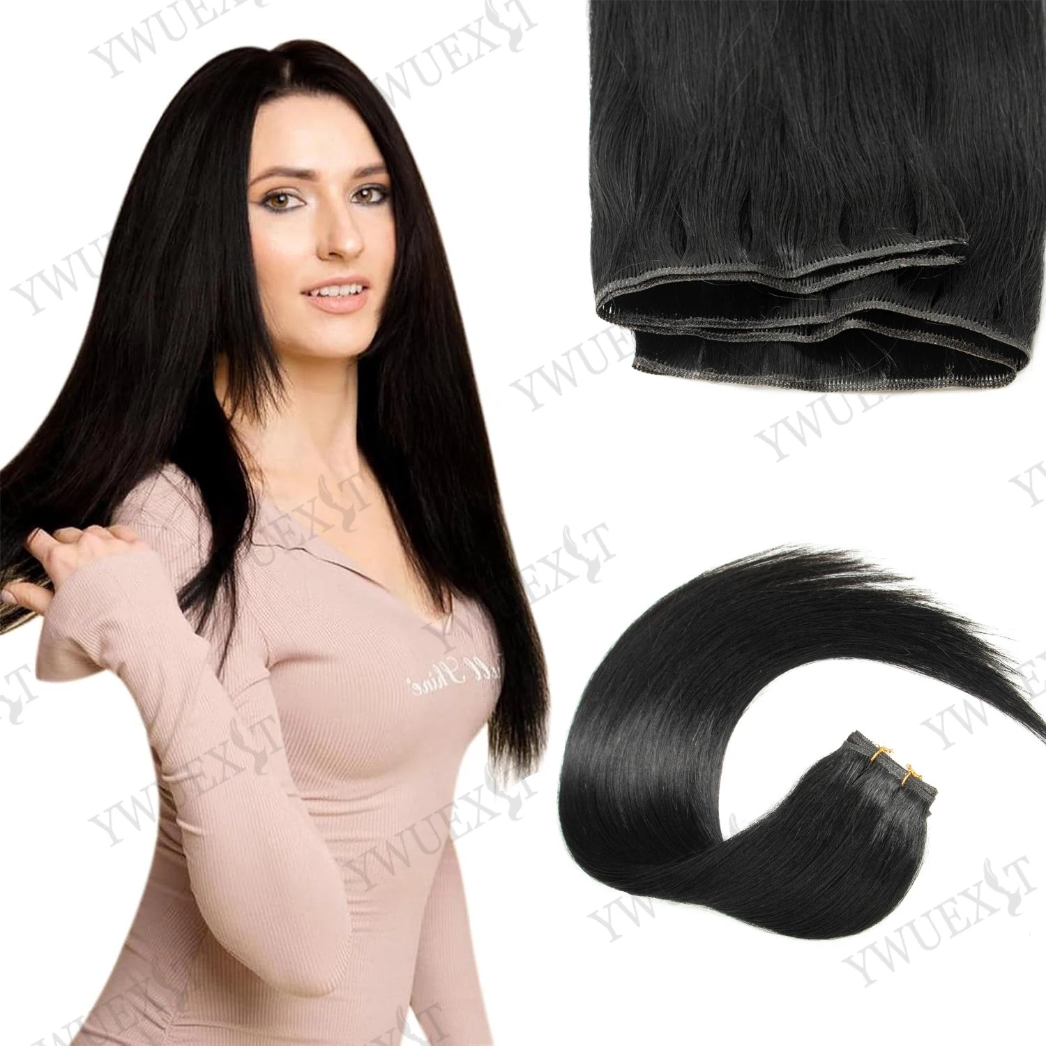 YWUEXT Black Sew In Hand Tied Weft Hair Extensions Real Human Hair 40G Genius Weft Extensions Remy Human Hair Sew In Silky
