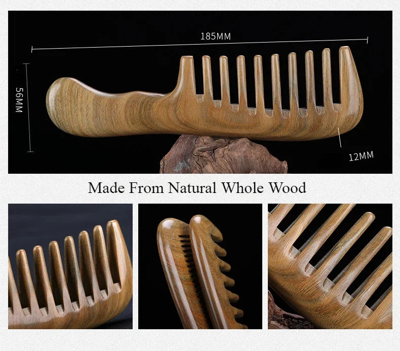 Crafted from natural green sandalwood, this comb offers a gentle touch and nourishing care for your hair.