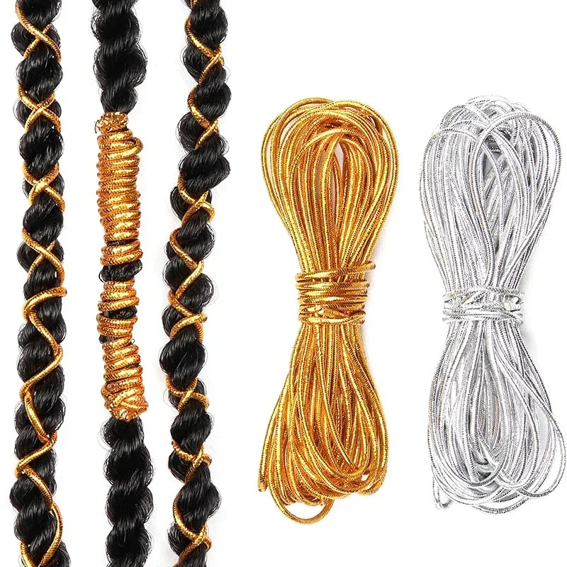 Dreadlock Braids Hair Accessories Gold Braiding Hair Deco Styling Shimmer Stretchable African Braid Braided Elastic Cord