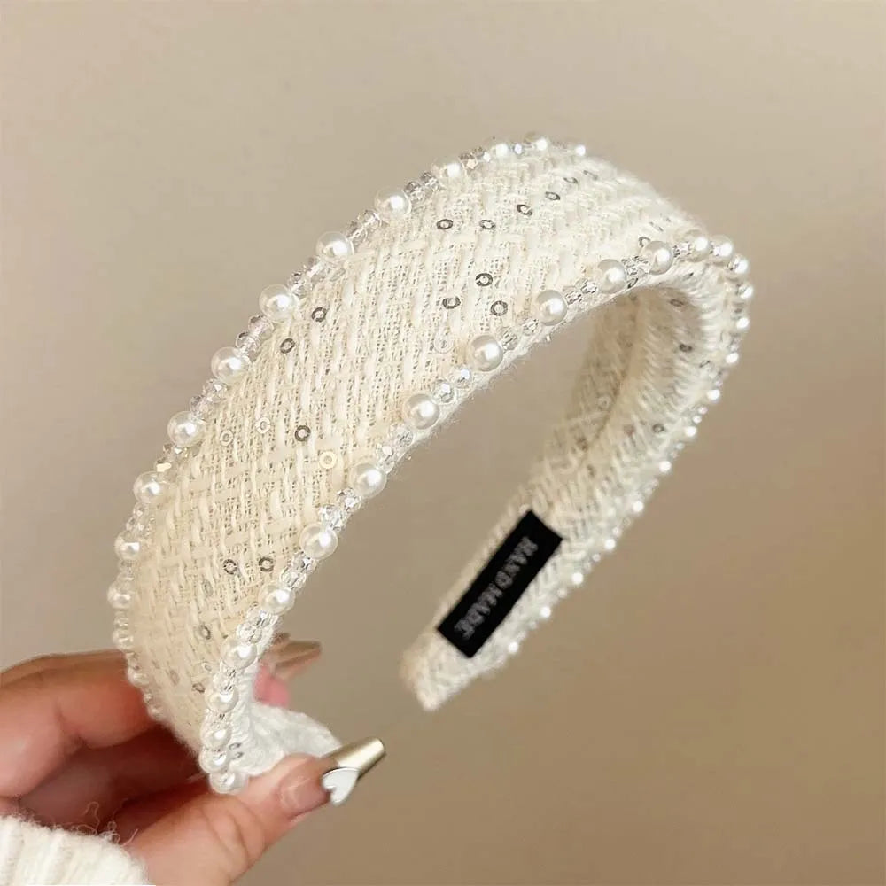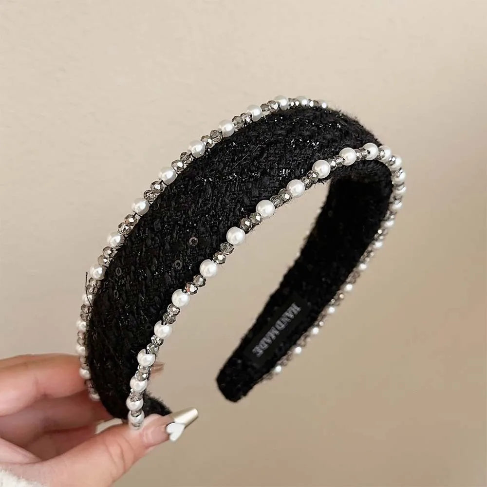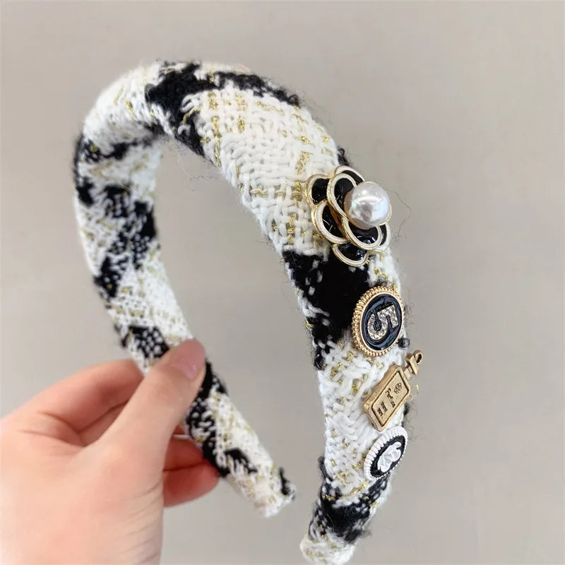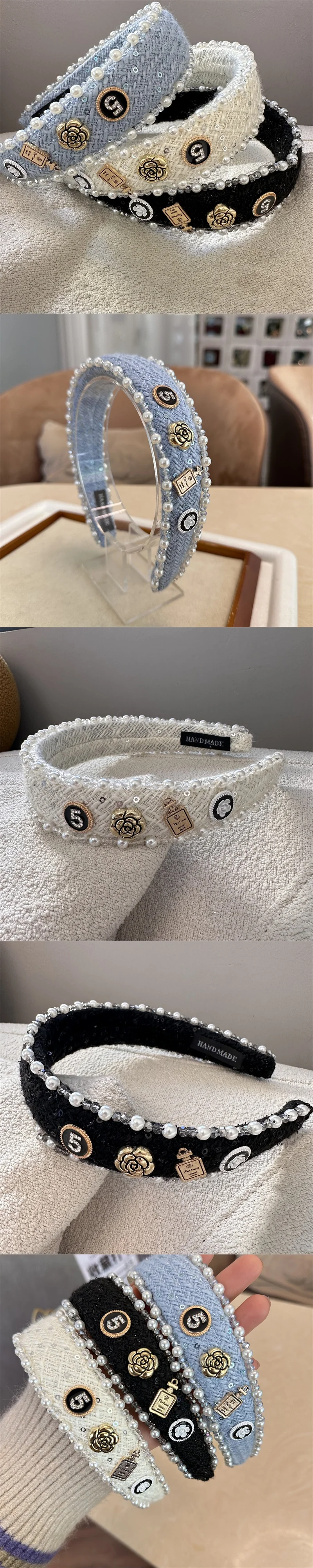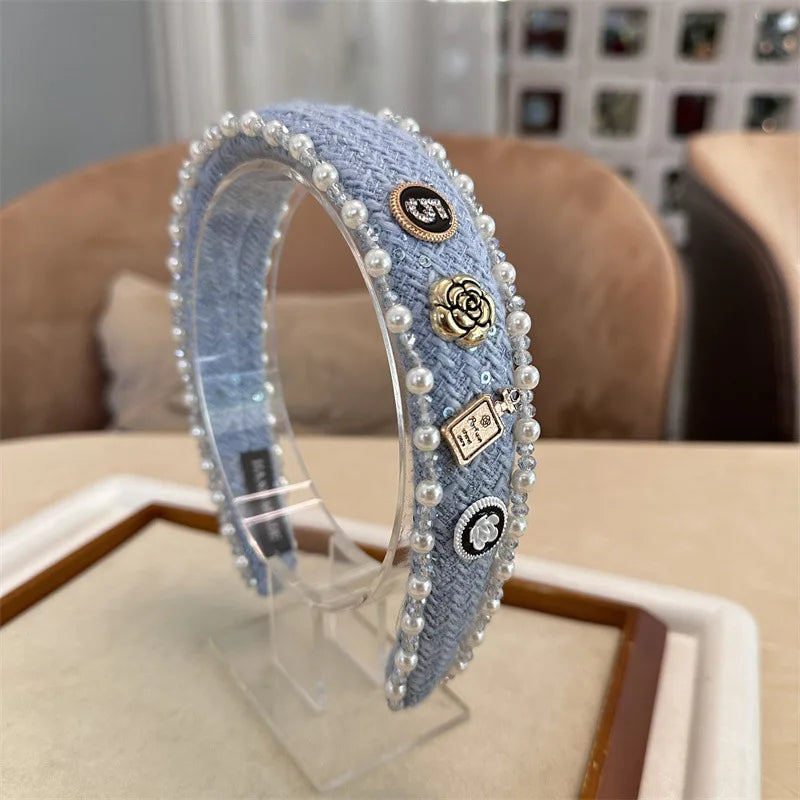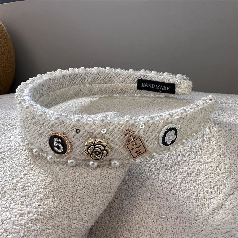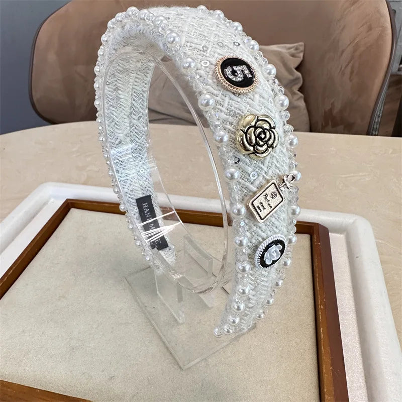 Exquisite Crystal Ball Pearl Number 5 Letter Camellia Headband Women Hair Accessories France Pearl Beaded Hairhoops Headwears