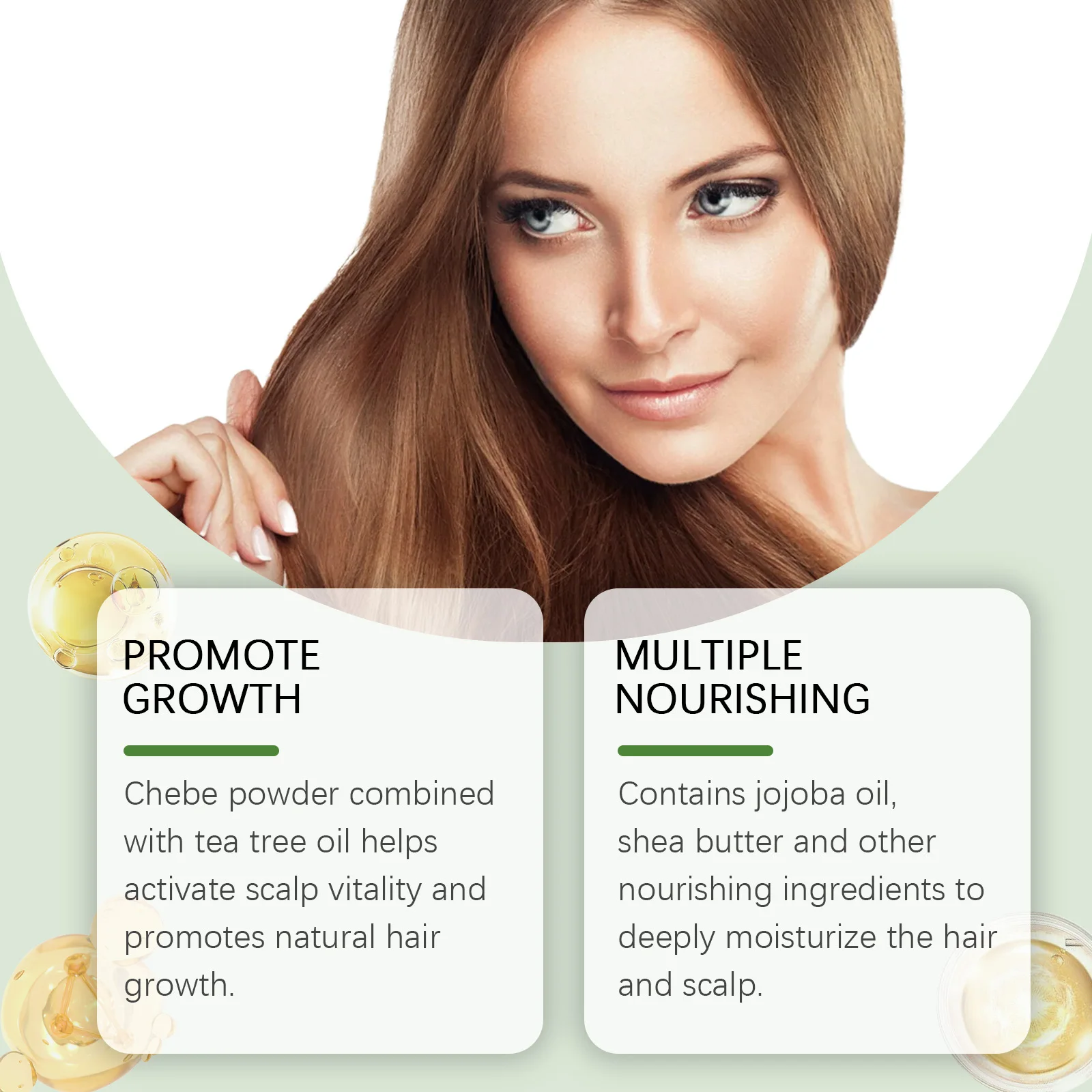 1. Our hair growth oil is rich in a variety of plant ingredients, which can deeply nourish your scalp and hair roots and promote a healthy environment for hair growth.