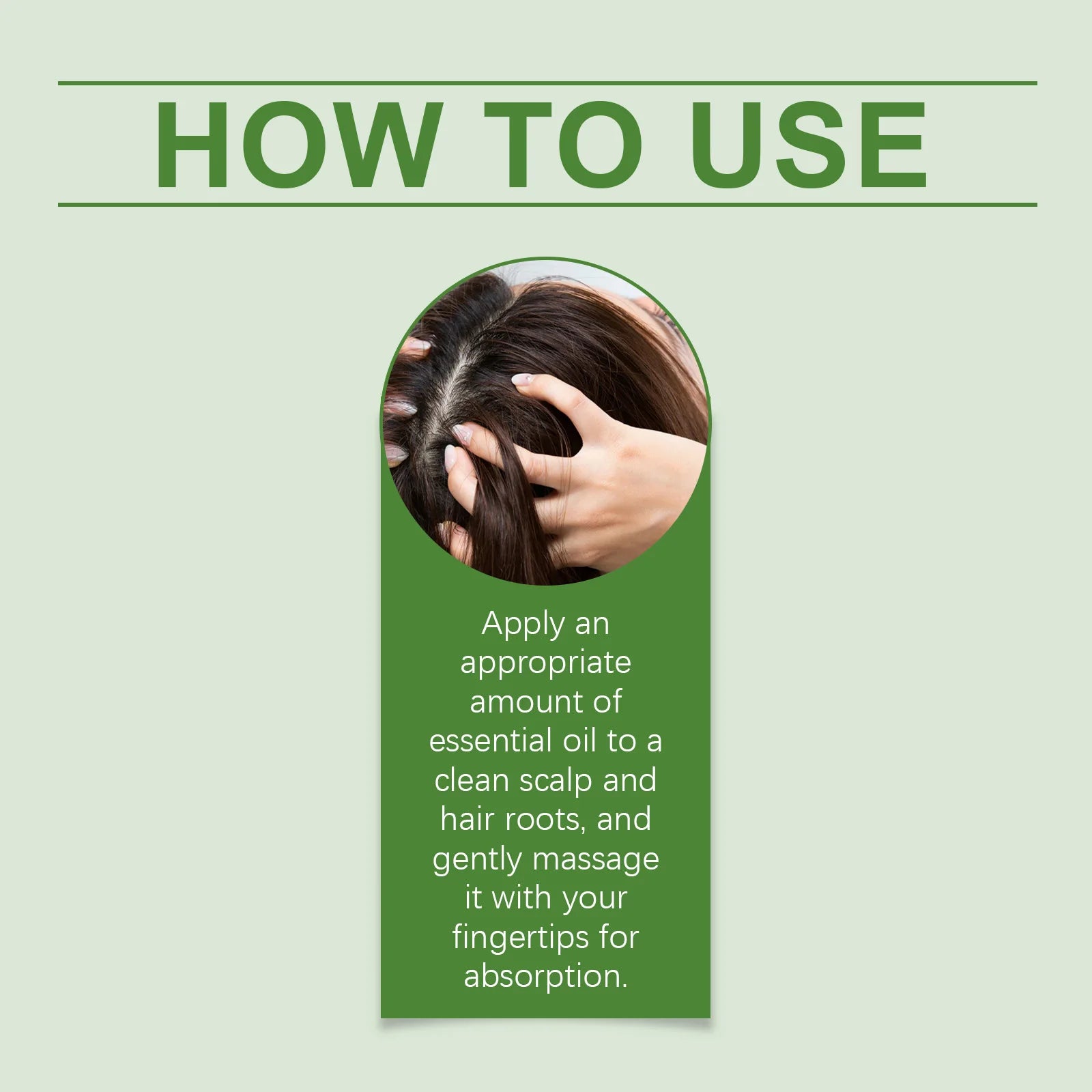 Apply an appropriate amount of essential oil to a clean scalp and hair roots, and gently massage it with your fingertips for absorption.