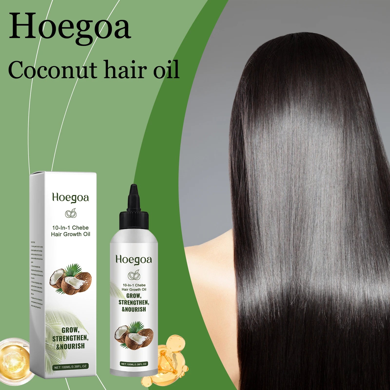 Hoegoa Coconut Hair Essence Oil Nourishing Scalp Reduce Dryness Anti-frizzing Smoothing Reduce Spilt Ends Strengthening Hair Oil